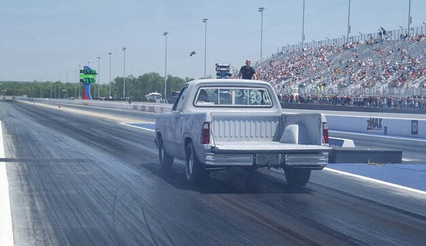"Irene" is Rick and Chelle's 1974 Dodge D100 Custom truck. It first belonged to Floyd, Rick's Dad, in the 80's. Floyd wanted to paint it yellow, Rick told him "If you're going to paint something yellow, then you had to have a motor to impress". They did paint it yellow, but weren't pleased with the job. Floyd passed away in 2009. Rick and Chelle tore her apart in 2009, and planned on painting her. While she was torn apart, they got called to run pinks all out in Charlotte at Zmax Dragway ,and they only had 10 days to put her back together. She has been in primer for 6 years, and they took her racing in July 2014. Irene wasn't leaving the line as hard as normal, they discovered the timing chain had stretched. One thing led to another and a $13 timing chain led to a full off frame restoration. She is a street rod truck they go everywhere in. They drag race, enter car shows, go fishing, go grocery shopping, etc.