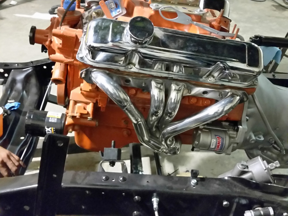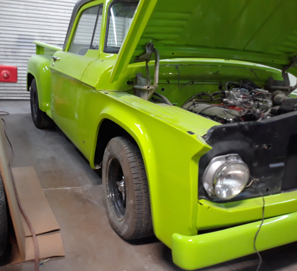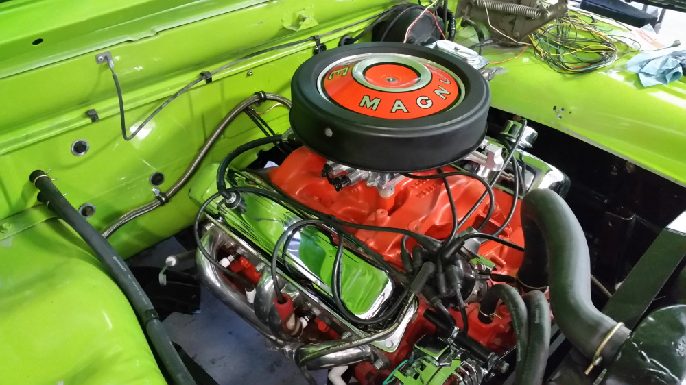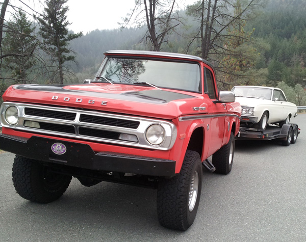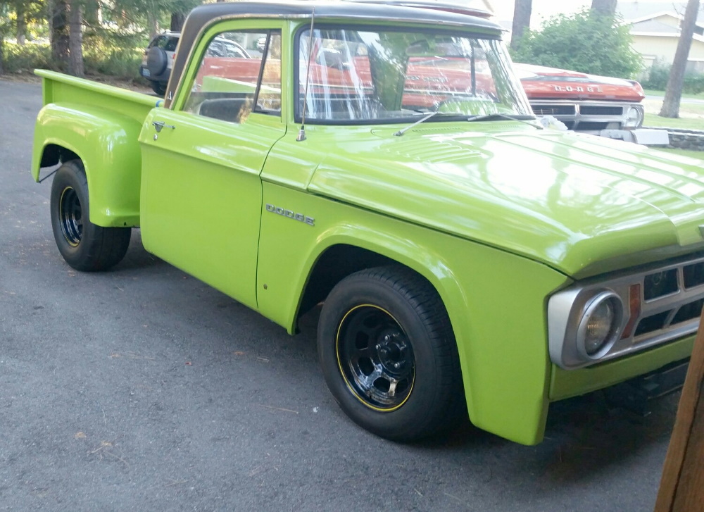 Buzz's 1971 W100 has a new 383 almost hooked up, & a his 1968 D100 is almost finish assembled; at his friend's body shop. The 68 is an original 383 Stepside NV truck that the Elko, NV Dodge dealership had for years as their "lot truck", & Buzz is the 2nd registered owner. Buzz has its original 383 2bbl motor in storage, & put the 383 from his Challenger in his 68 a few years ago. He plans to take it on it's maiden voyage before snow hits!