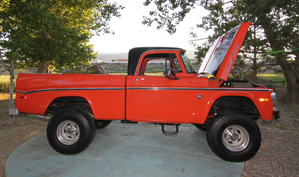 The 71 W100 is undergoing a "redo" with a 470 Stroker motor being built for it (400 block, aluminum heads, etc.), & suspension upgrades. Buzz hopes to have it finished by August 2016. It had a 70 383 Magnum from his Challenger & has a 1980 3/4 ton chassis upgrade (front discs, in frame tank, etc.). It has AM/FM 8 track, 2006 seats, electric antenna & windshield washer.