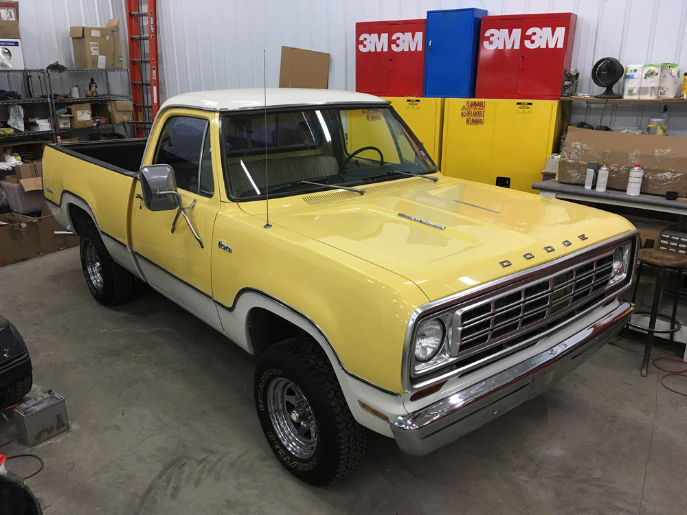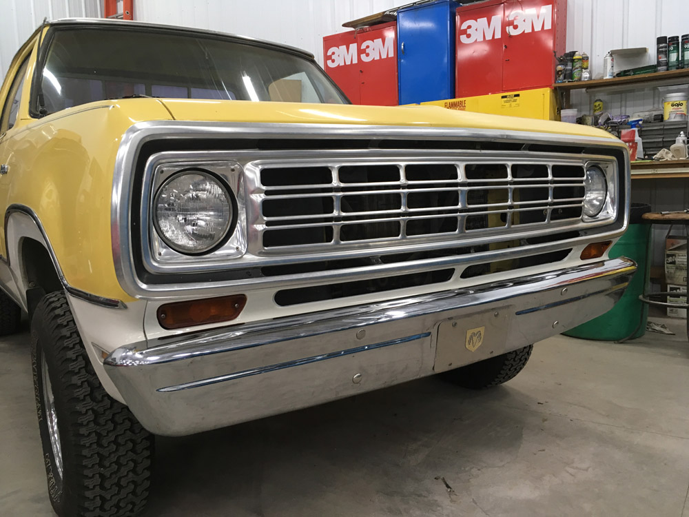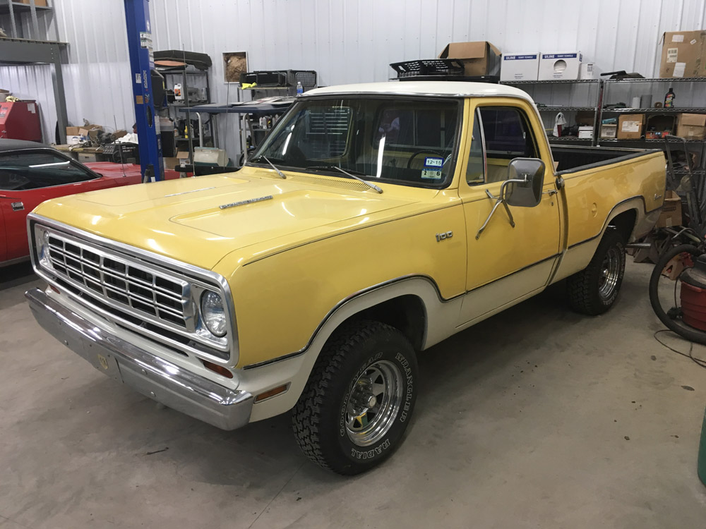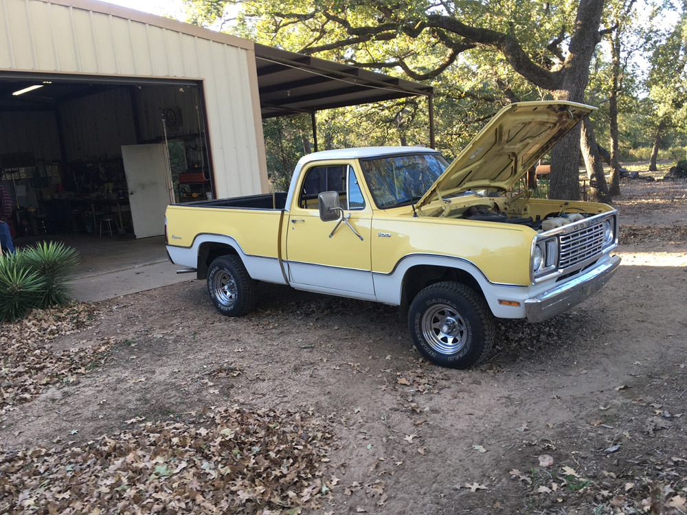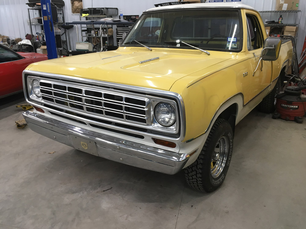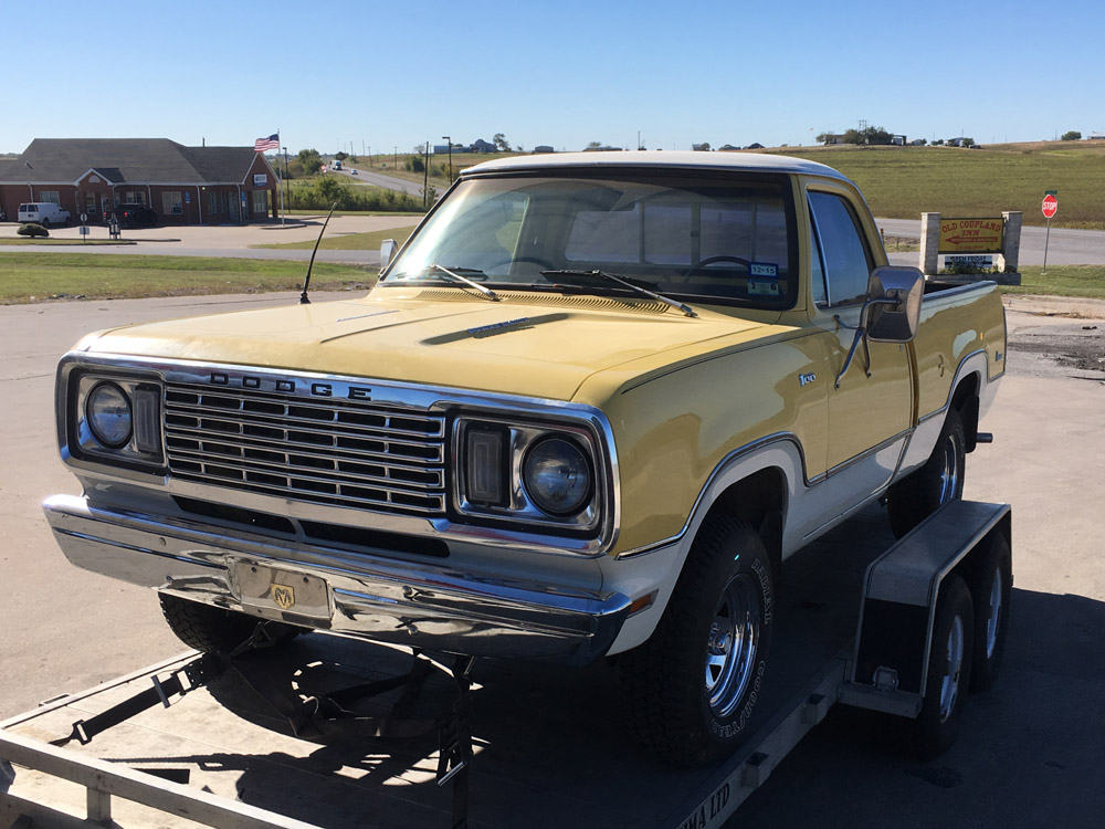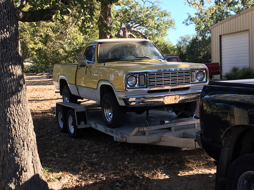 After searching nationwide on and off for several years, a truck finally popped up in Texas that had potential. It was a rust free, 1975 Dodge Power Wagon, 4X4, regular cab, short box, 360, AT, A/C nice original truck! It had the Adventurer two tone paint package, and a slider back window. The odd thing was; it had a '78 grill and lower front valance installed on it. That didn't bother Eric. He was hoping the front end hadn't been crashed, and that it wouldn't have other issues. Eric knew he would need to go to Texas, to see the Power Wagon in person.