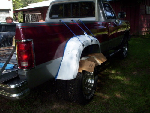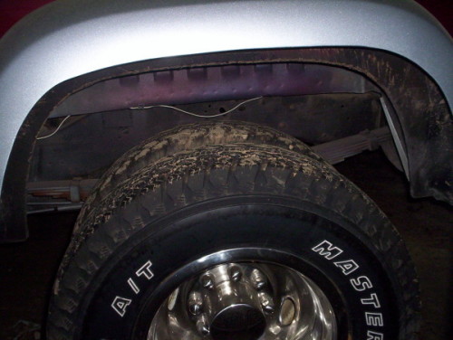 If this is done carefully, the result is a dually fender that forms closely with the side of the bed. There is no need to add the beading required with the regular dually bed. As you can see from the pictures, it gives you a super clean dually. You should check your tire clearance carefully if you have oversize tires.