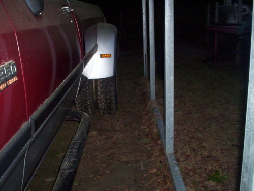 - Temporarily position the fender at the correct place on the side of the bed and hold it there securely.