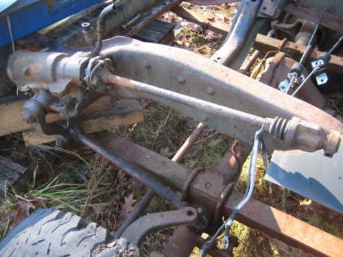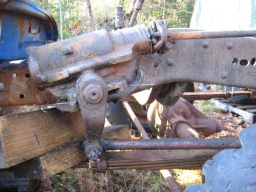 When you add the extra weight of a diesel engine and larger tires, the forces are greatly increased and you may find that the stamped steel mounting plate is pulled and pushed from the frame very slightly, which can be seen when you inspect it while a helper is turning the steering wheel.