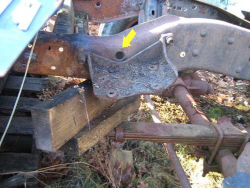 Additional information by Marv Neal. The bracket mounts inside the frame. It was first offered in 1992 on 4WD diesel trucks and really helped with stamped steel bracket cracking and frame cracking. Another thing that helps the stamped steel bracket live is burnishing all the holes to ease all the sharp edges so a crack has a more difficult time getting started. Marv said he sold every one of the frame rail steering gear reinforcing brackets that came into his yard. Marv agrees the earlier setup with better geometry is better when a combination of a raised truck, big tires, and a diesel engine is being used.